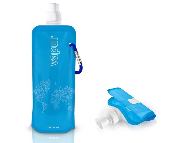 Doesn’t seem fair that we can’t bring liquids on a plain yet flying causes dehydration. The Vapur rolls up when empty, but expands to hold 18 oz. of water. No more purchasing overpriced bottled water at the airport.